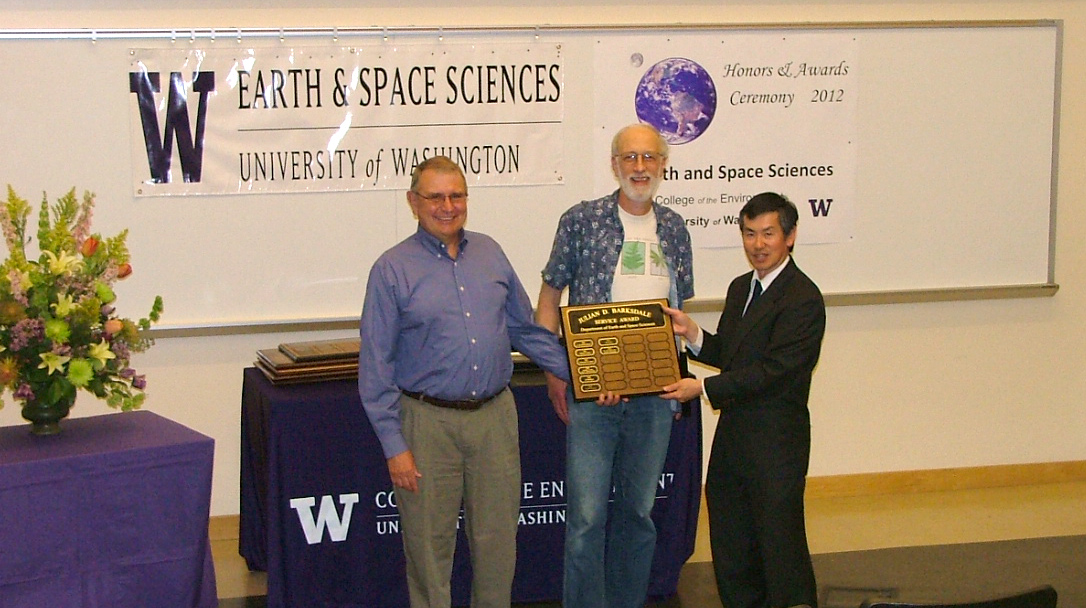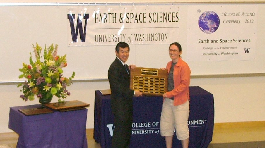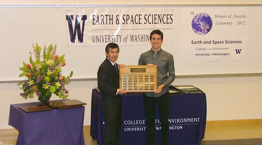 The 2012 Honors and Awards Ceremony was held on Thursday May 17th at 3:30 pm in JHN-102, hosted by ESS Chair Robert Winglee. There were numerous honors, awards, and scholarships given during this ceremony before adjourning to a reception in the Johnson Hall Courtyard.