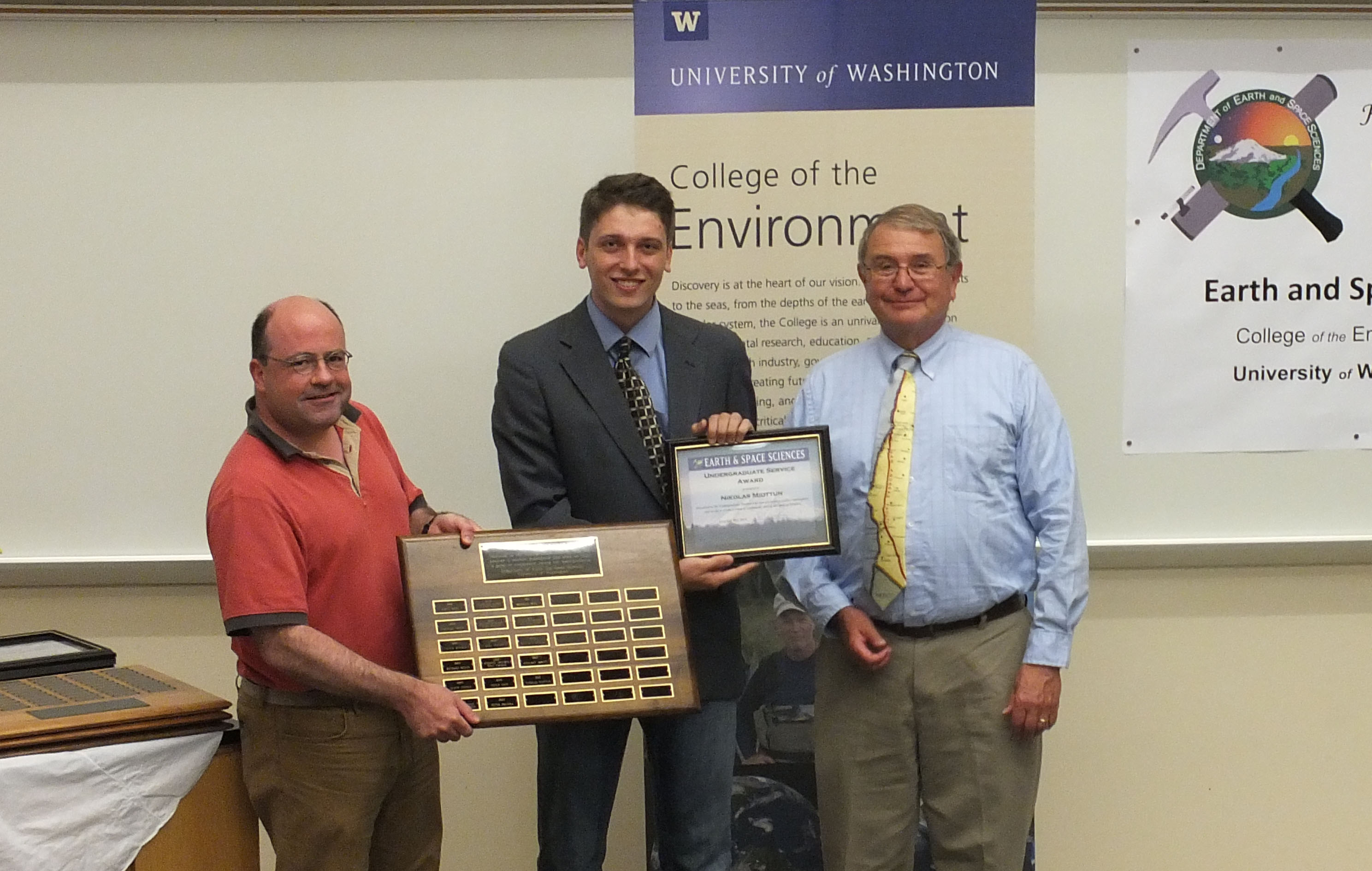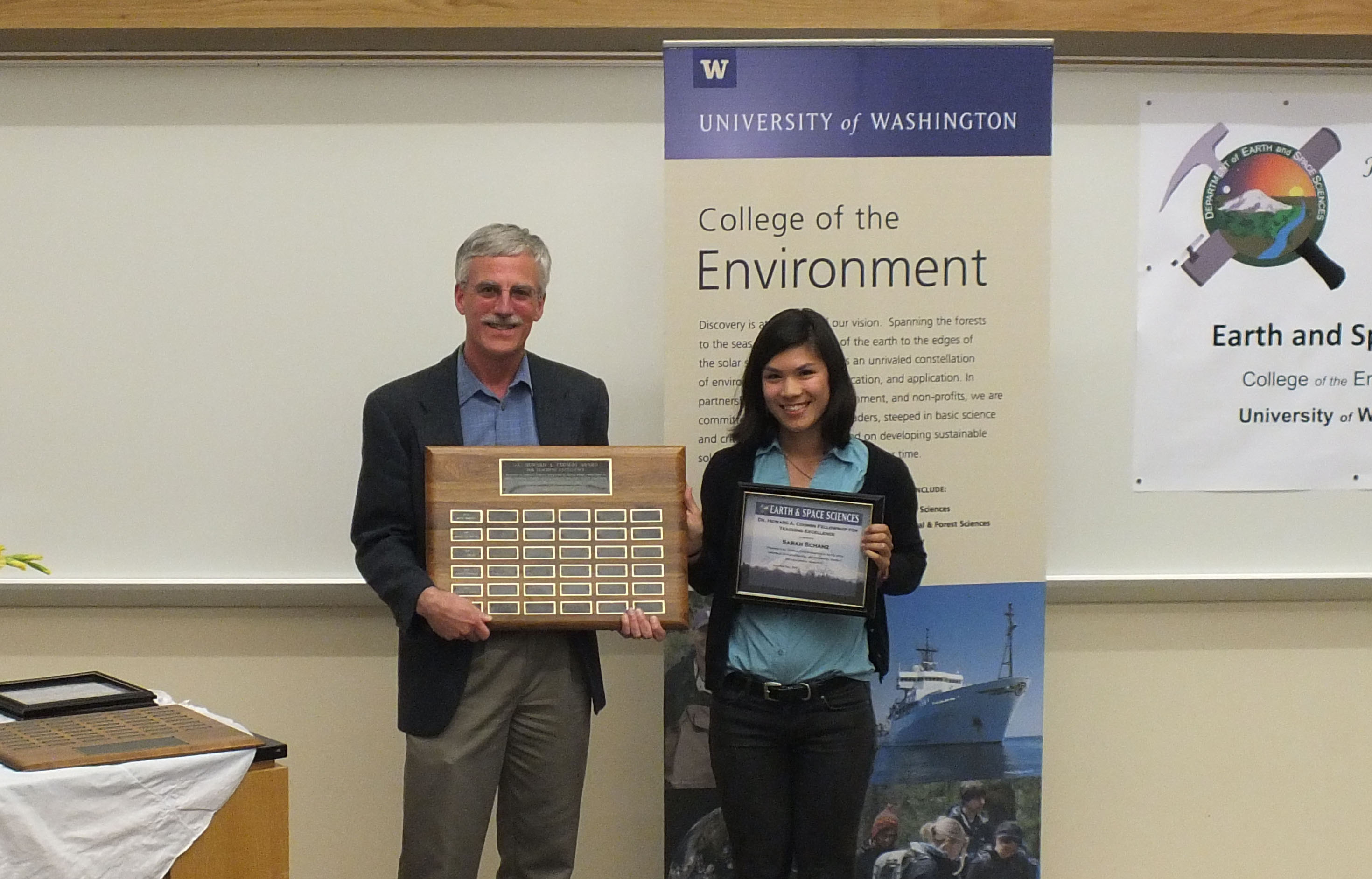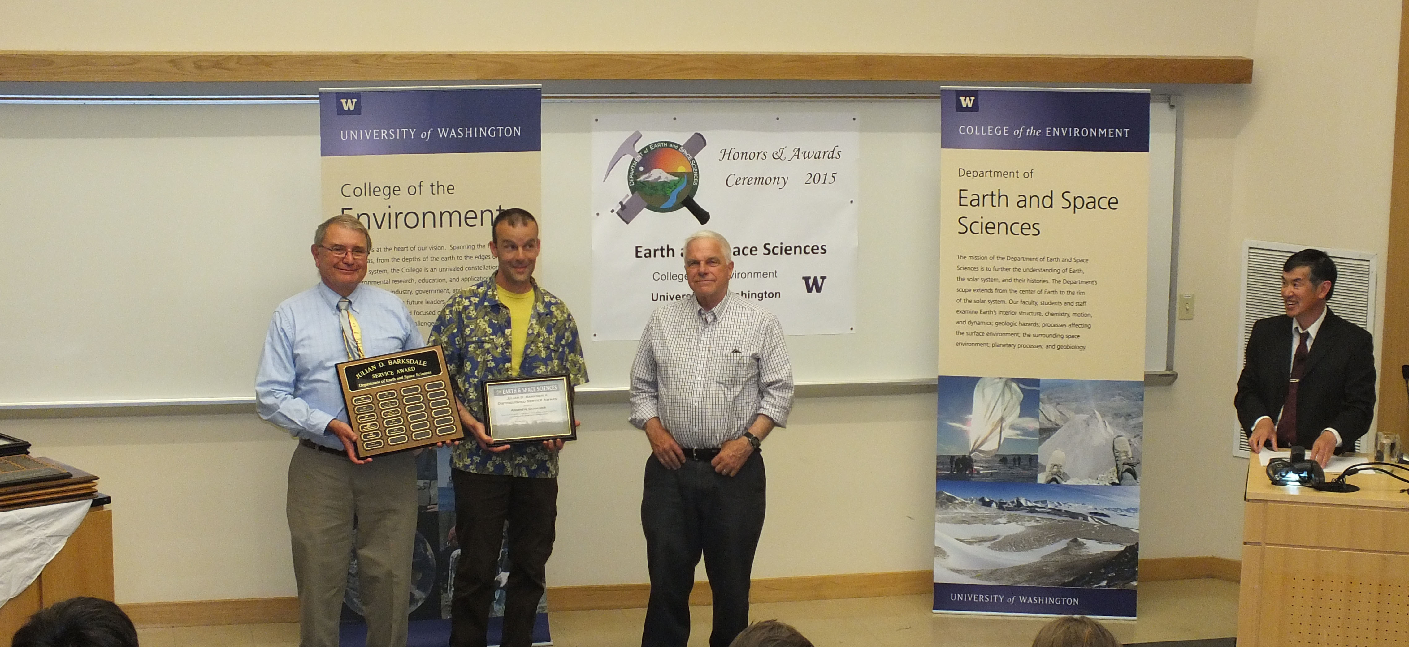 The 2015 Honors and Awards Ceremony was held on Wednesday May 20th at 4:40 pm in JHN-102, hosted by ESS Chair Robert Winglee. There were numerous honors, awards, and scholarships given during this ceremony before adjourning to a reception in the Johnson Hall Courtyard.