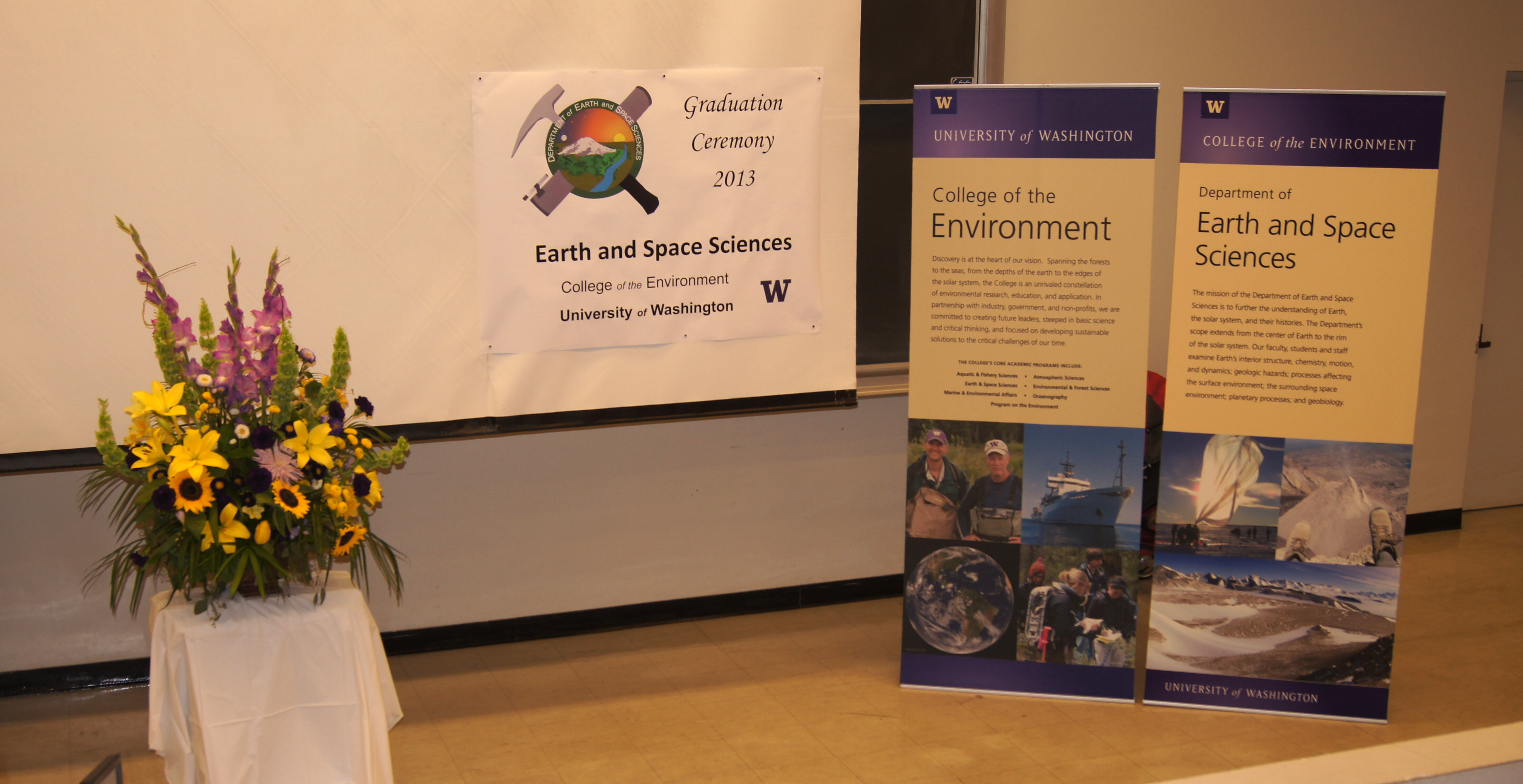 The 2013 Graduation Ceremony was hosted by Chair Robert Winglee, with special guest speakers Dean Lisa Graumlich and Dr Nadine Nereson (UW Geophysics - '98), plus student speakers Aurora Burd and Katie Gauglitz.